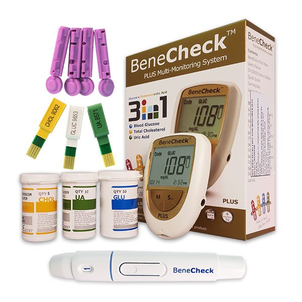 Chỉ với một sản phẩm duy nhất đó là máy kiểm tra đa năng BeneCheck 3in1 đã giúp người dùng có thể thoải mái kiểm tra đượmỡ máu (Cholesterol)đường huyết (Glucose) và bệnh gút (Acid Uric) ngay tại nhà mà không cần phải đến phòng khám nữa. Với thiết bị máy đo đường huyết tại nhà bạn có thể có thêm nhiều thông số về sức khỏe bạn.